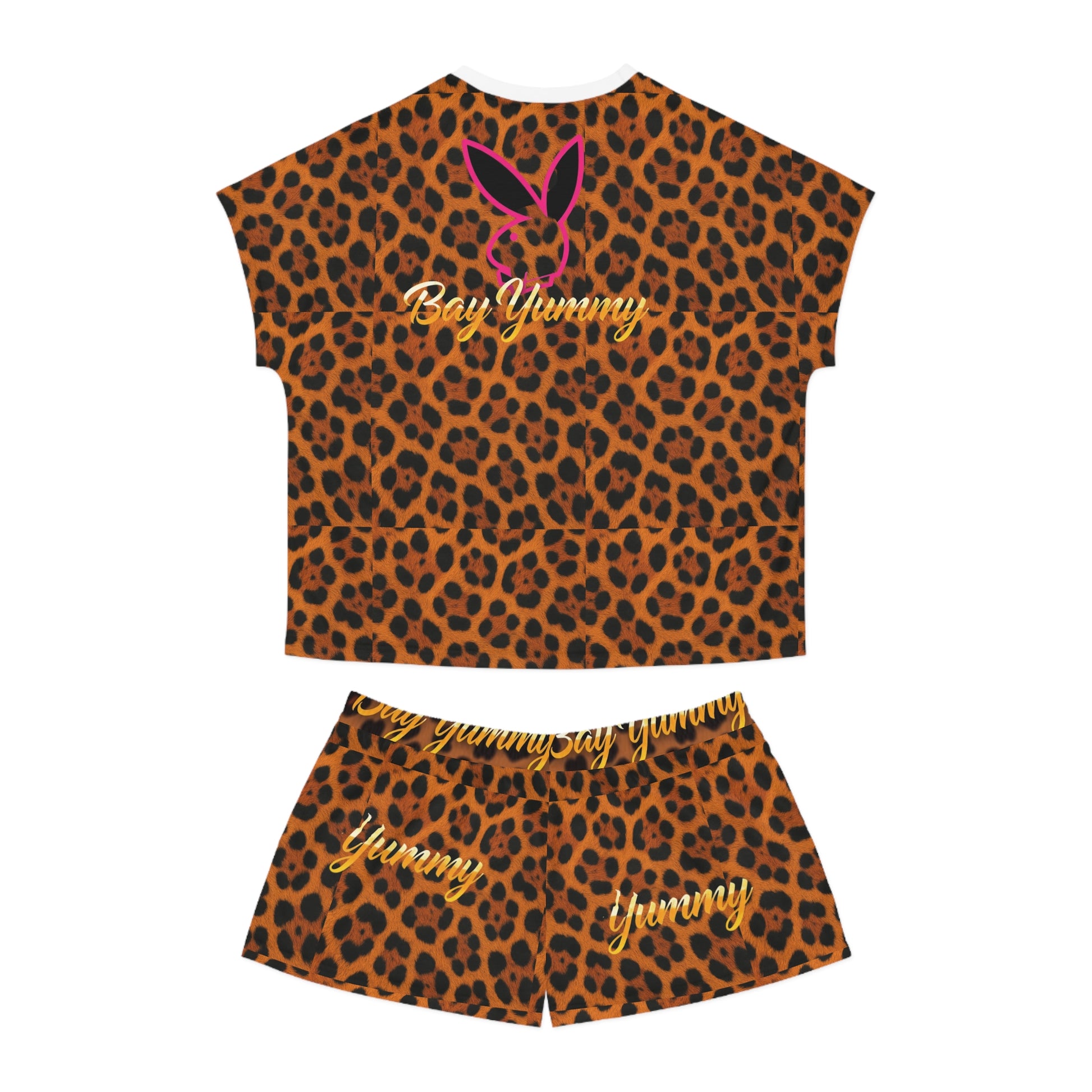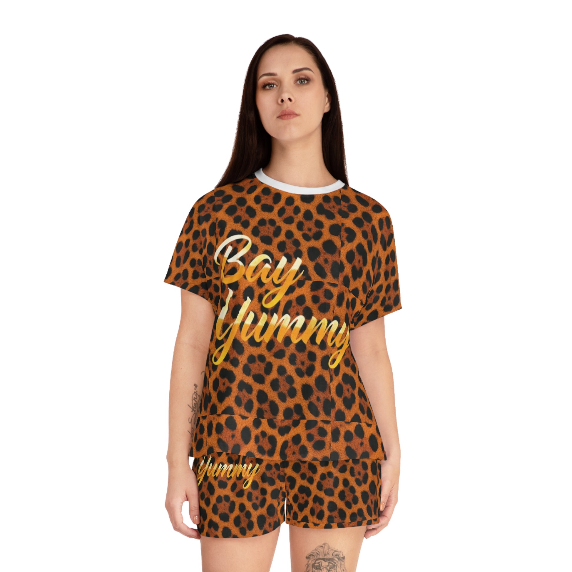 Slide into a cozy, confidently bold night with this relaxed pajama set. The soft, stretchy fabric skims the skin, while the oversized cut and no-sleeve-seam construction give it a laid-back, lived-in feel. Warm caramel and deep-black leopard spots wrap the whole set, and a crisp contrasting collar adds a clean frame at the neckline. Wear it for slow mornings with coffee, late-night chats with friends, or low-key self-care evenings when you want comfort that still reads fierce and fun.