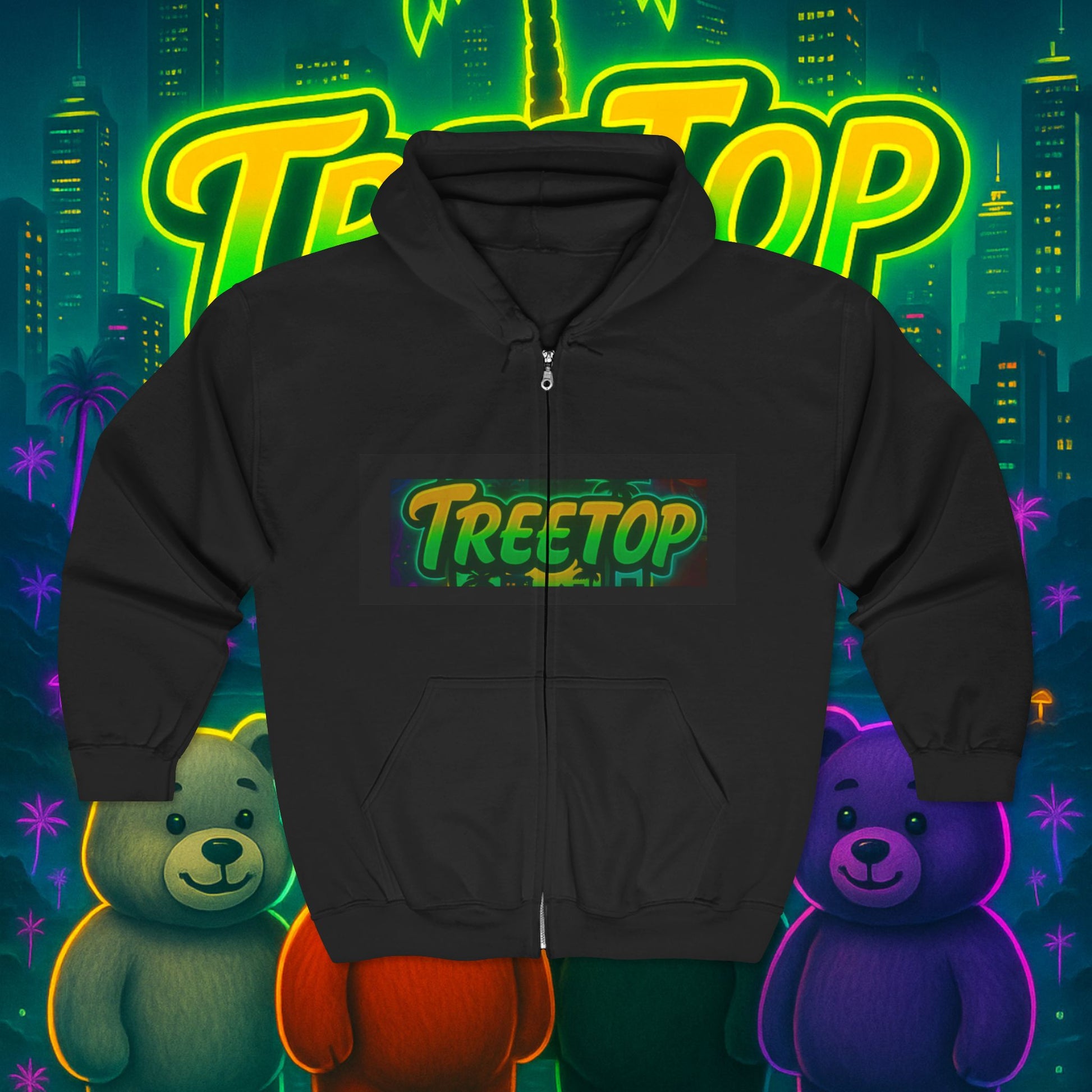 A black treetop branded hoodie that exudes a cool and casual vibe, perfect for everyday wear. The spacious pockets and adjustable hood with drawstring make it practical and comfortable for anyone on the go. Ideal for adults looking for a stylish and functional sweatshirt to add to their wardrobe. Relevant for casual outings, lounging at home, and cool weather seasons.