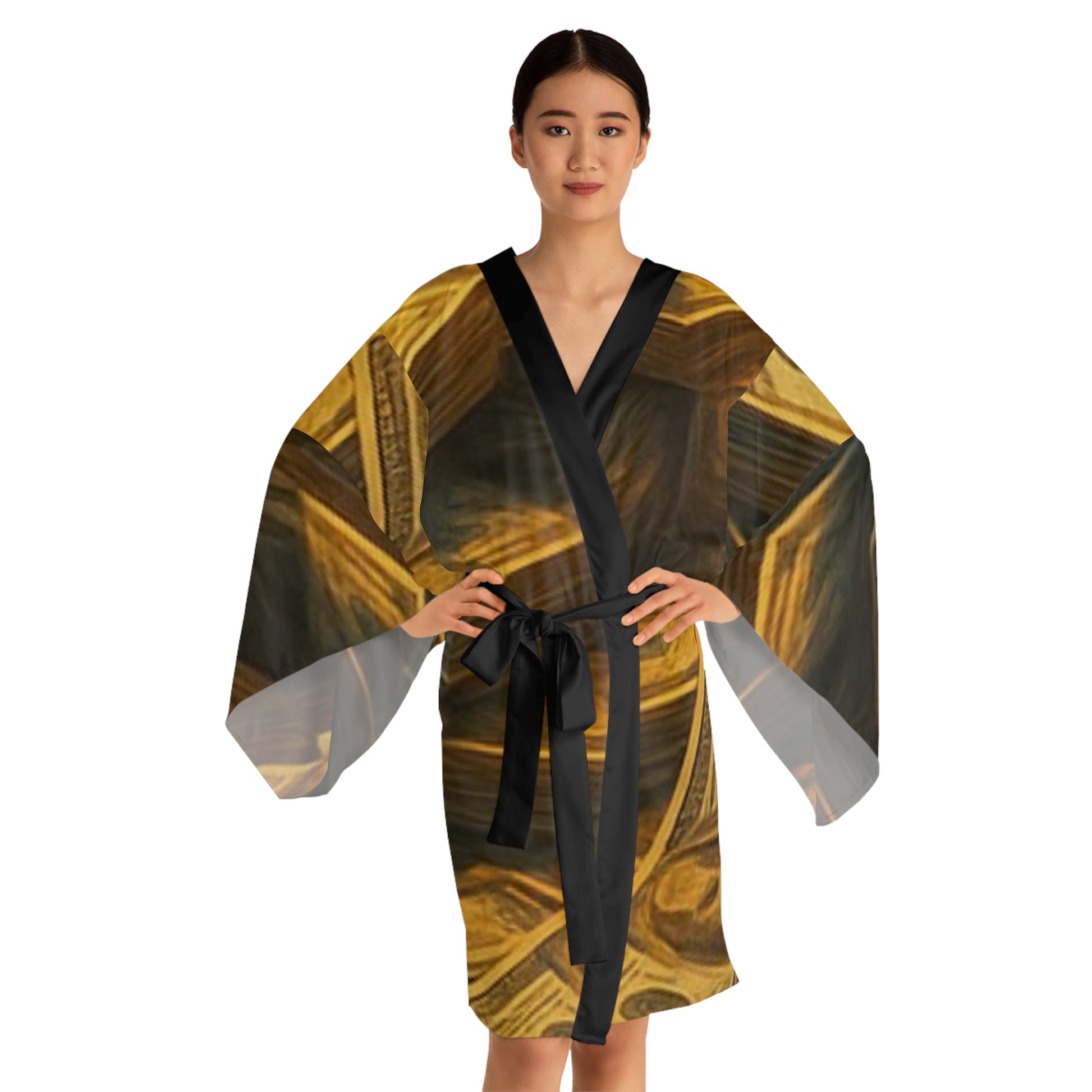 The Treetop Queen Robe from the Fall Collection is a luxurious and elegant mid-length robe with long, flowing bell sleeves, perfect for feeling like royalty at home or at a special event. Made of 100% polyester, this robe is strong, durable, and dries quickly. The kimono cut and figure-flattering shape make it versatile for any occasion.