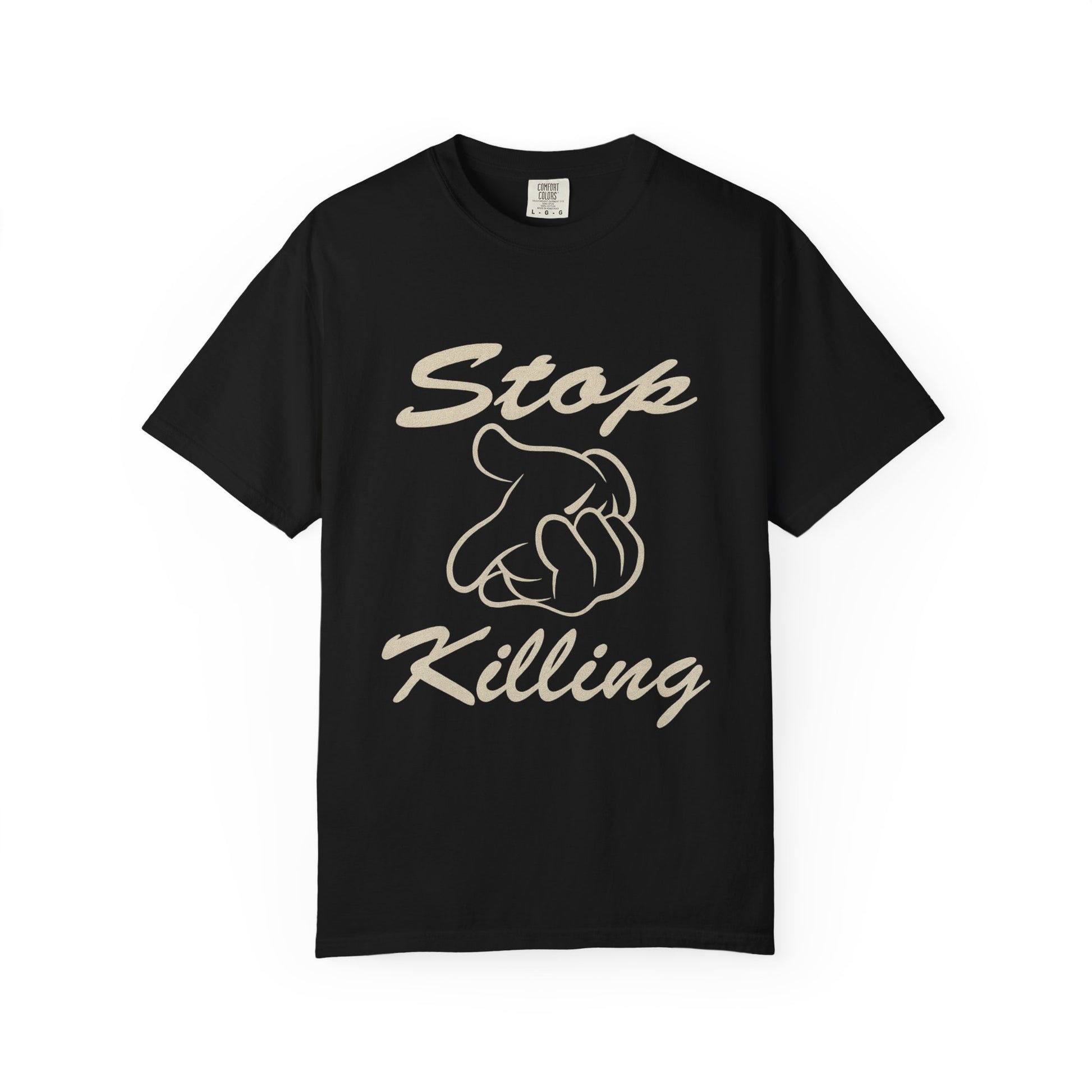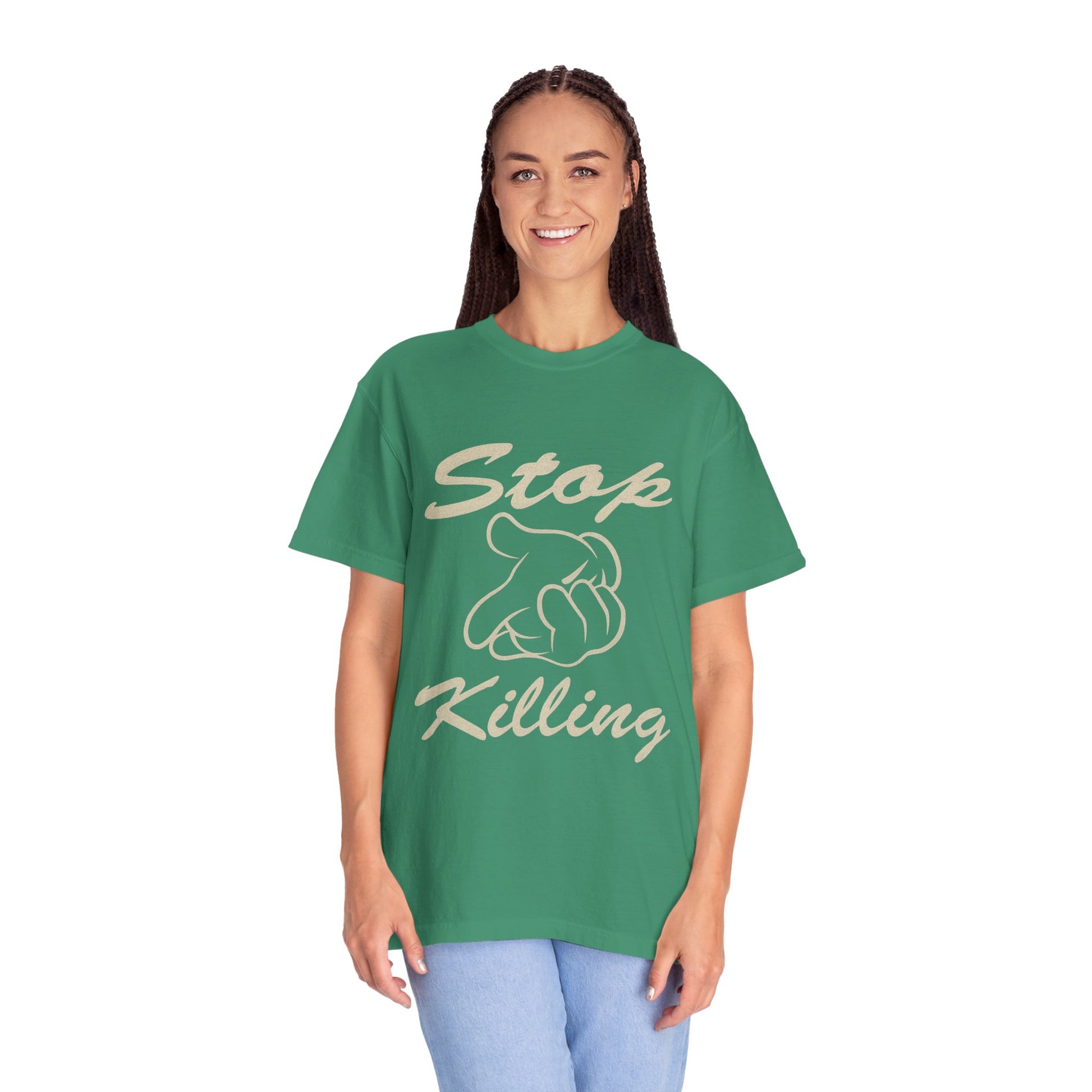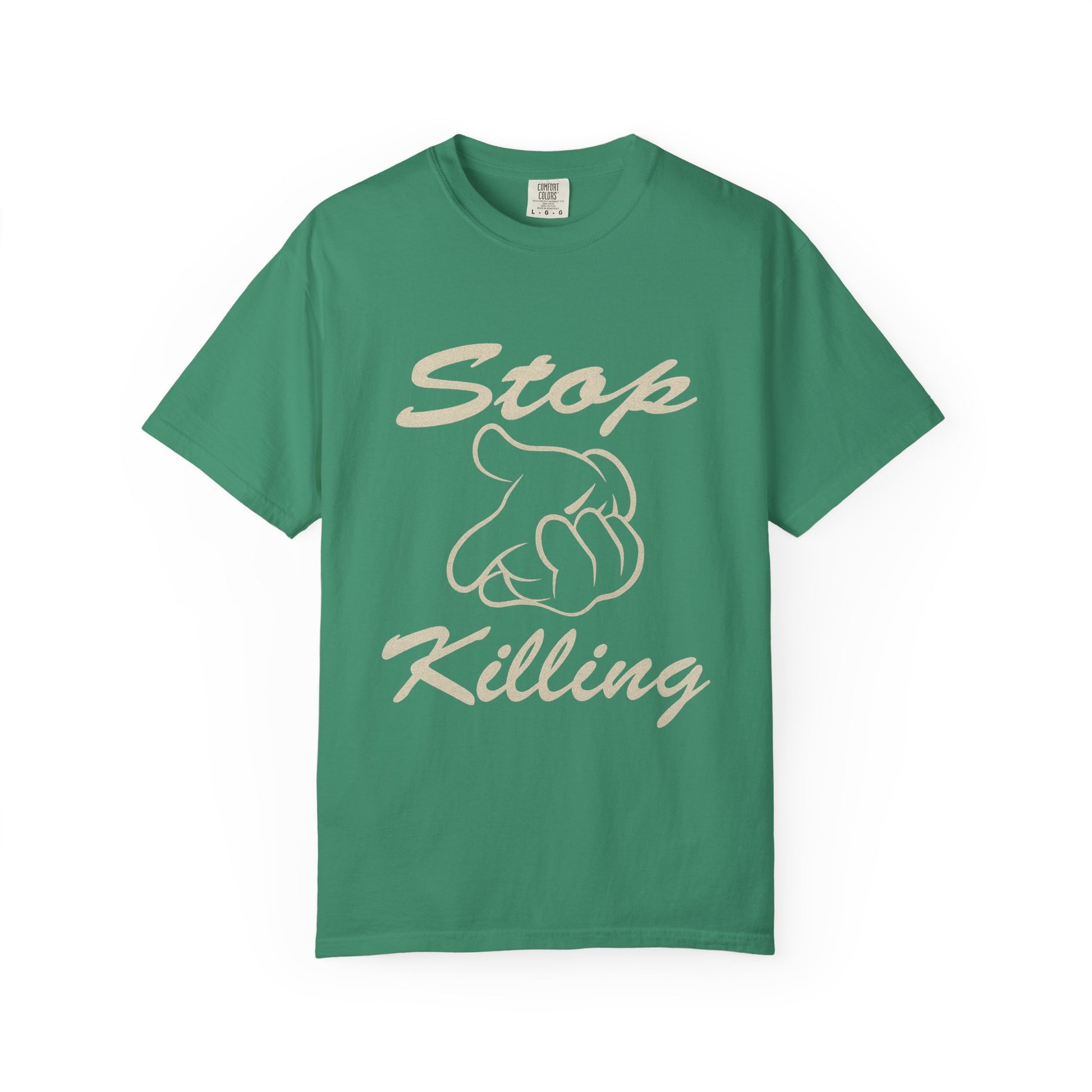 Garment-Dyed T-Shirt - Stop Killing Design, Eco-Friendly Apparel, Protest Tee, Casual Wear, Oakand California, Social Justice Fashion