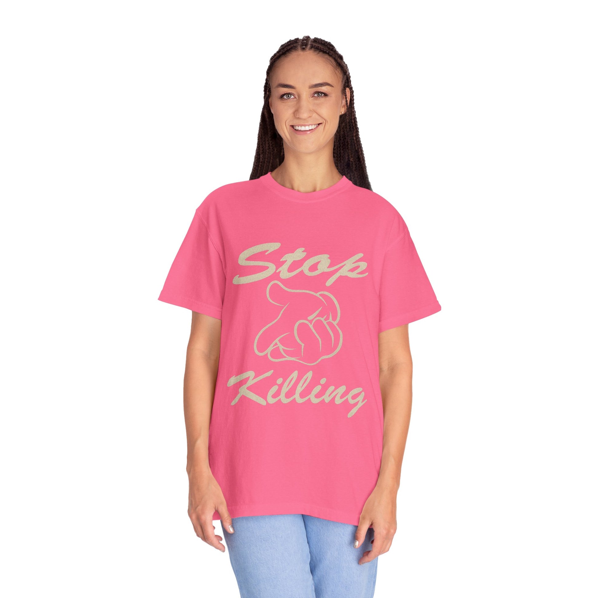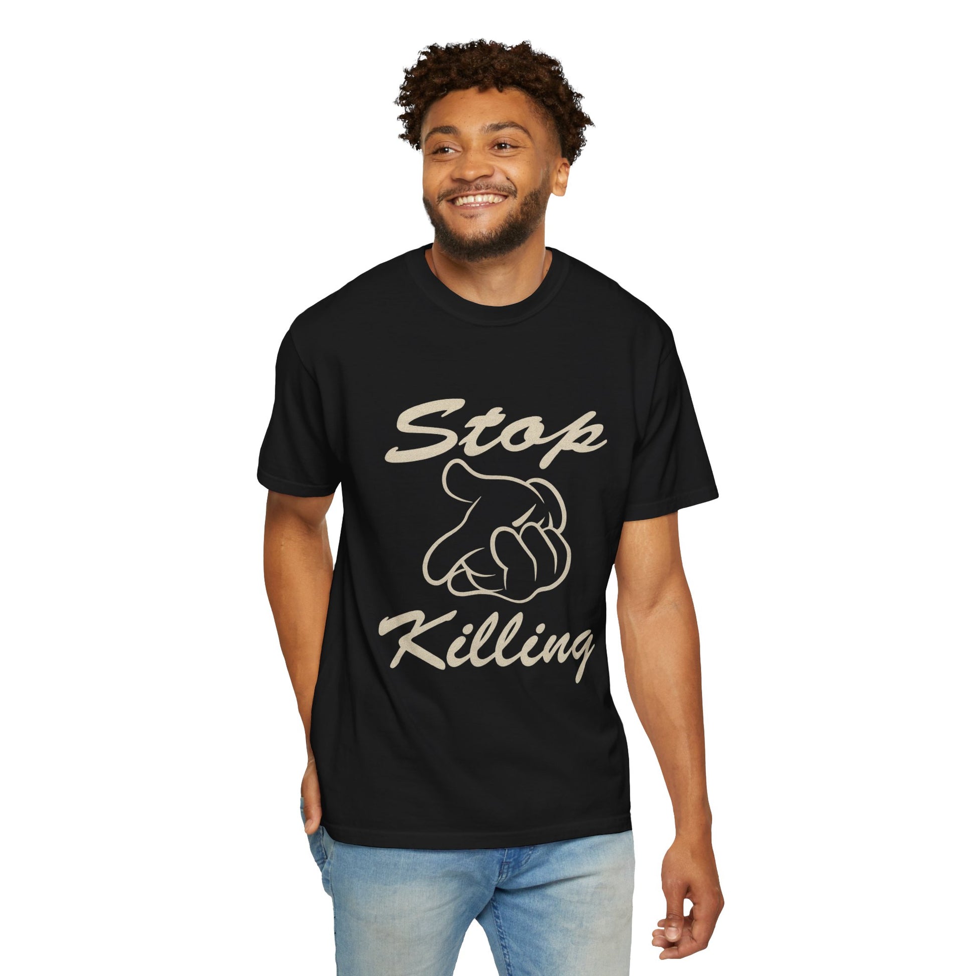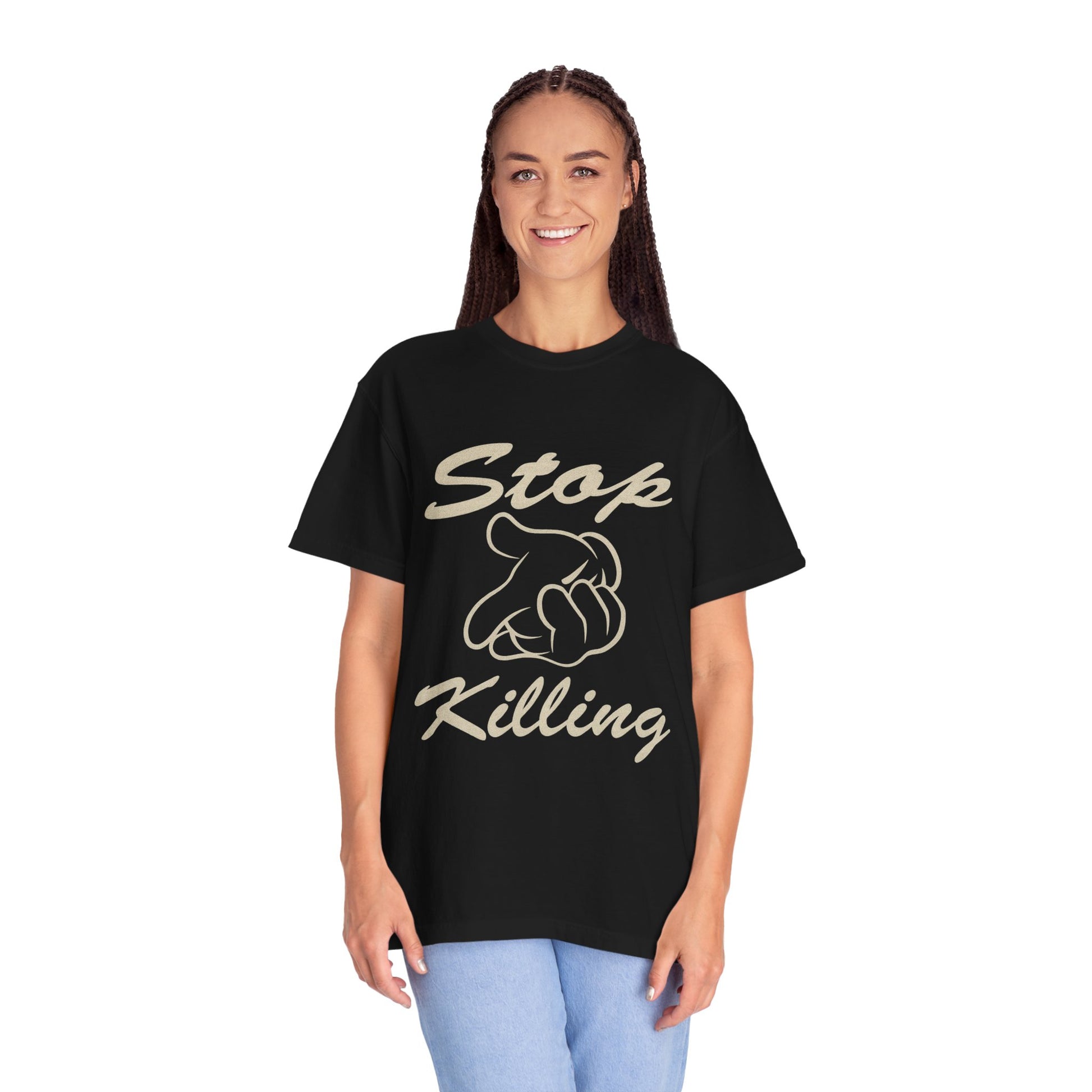 Garment-Dyed T-Shirt - Stop Killing Design, Eco-Friendly Apparel, Protest Tee, Casual Wear, Oakand California, Social Justice Fashion